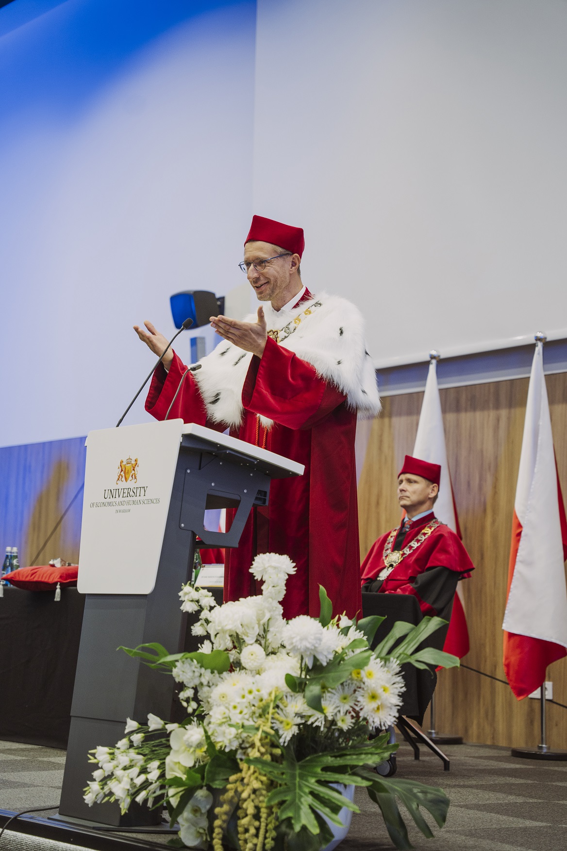 Cytatem z wiersza Wisławy Szymborskiej pt. „Gawęda o miłości ziemi ojczystej” rozpoczął przemówienie inauguracyjne Jego Magnificencja Rektor prof. Konrad Janowski, nawiązując do misji Akademii Ekonomiczno-Humanistycznej w Warszawie. W swoich słowach Rektor wskazał, że Akademia jest uczelnią wyjątkową, ambitną, która ogromną wagę przykłada do rozwoju swoich studentów, a także do zachowania najwyższej jakości kształcenia. Misją akademii jest nie tylko nauczać, ale również wychowywać w duchu uniwersalnych, humanistycznych wartości – głosił prof. Konrad Janowski.