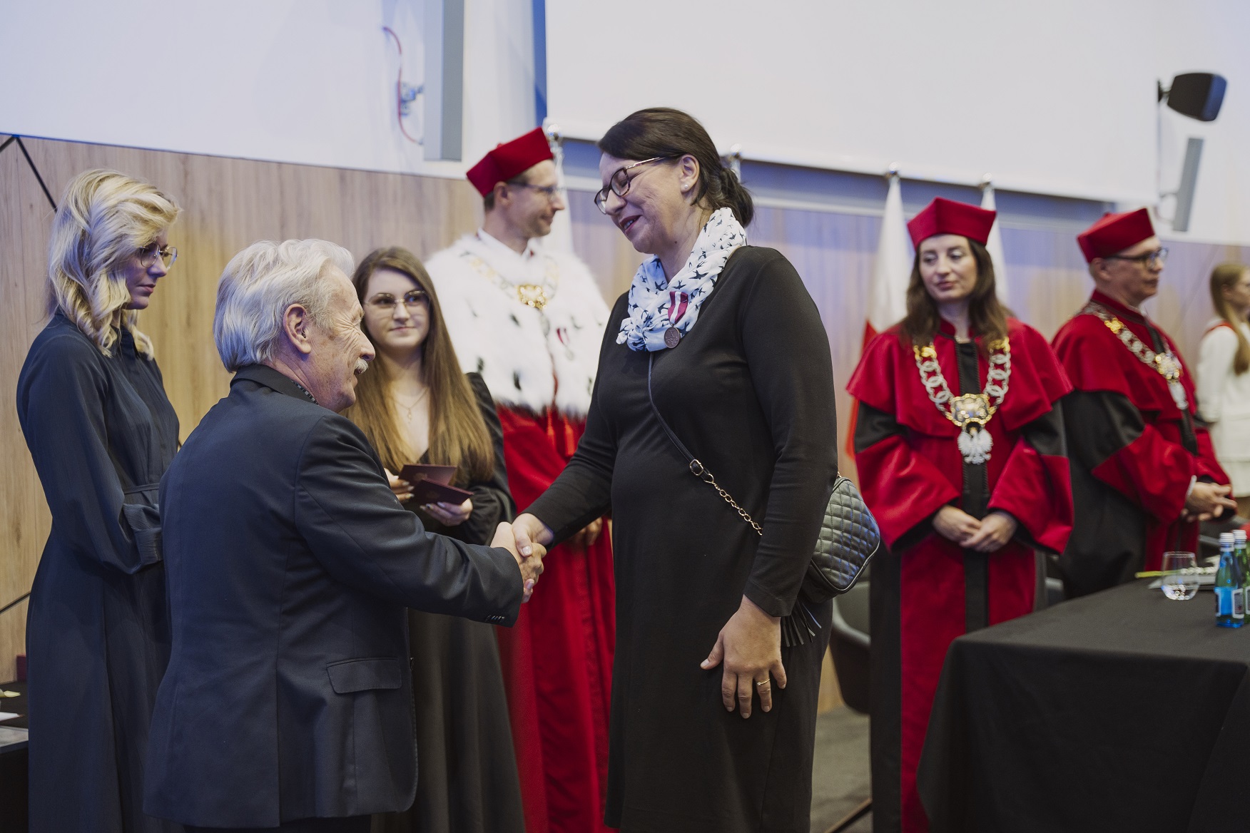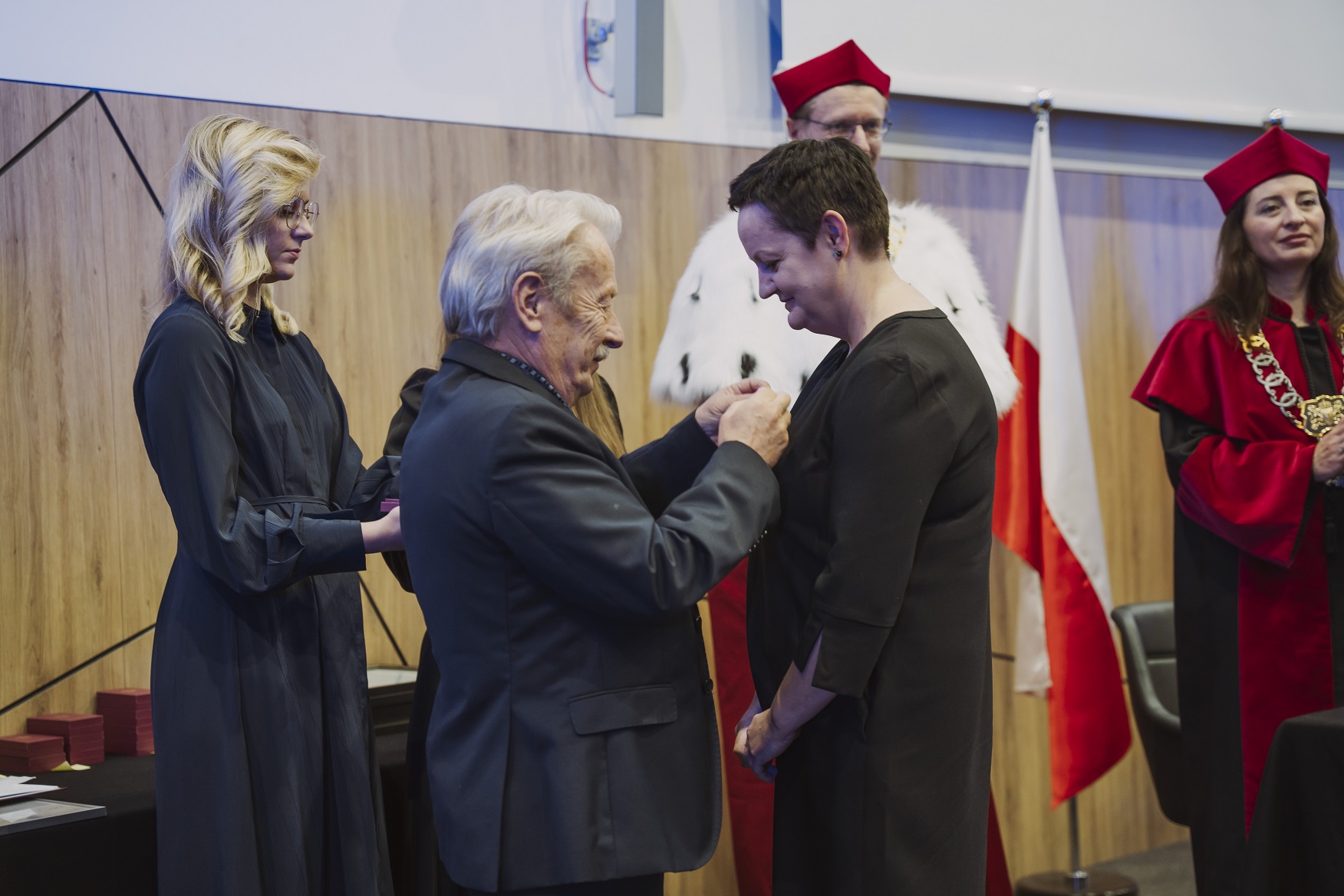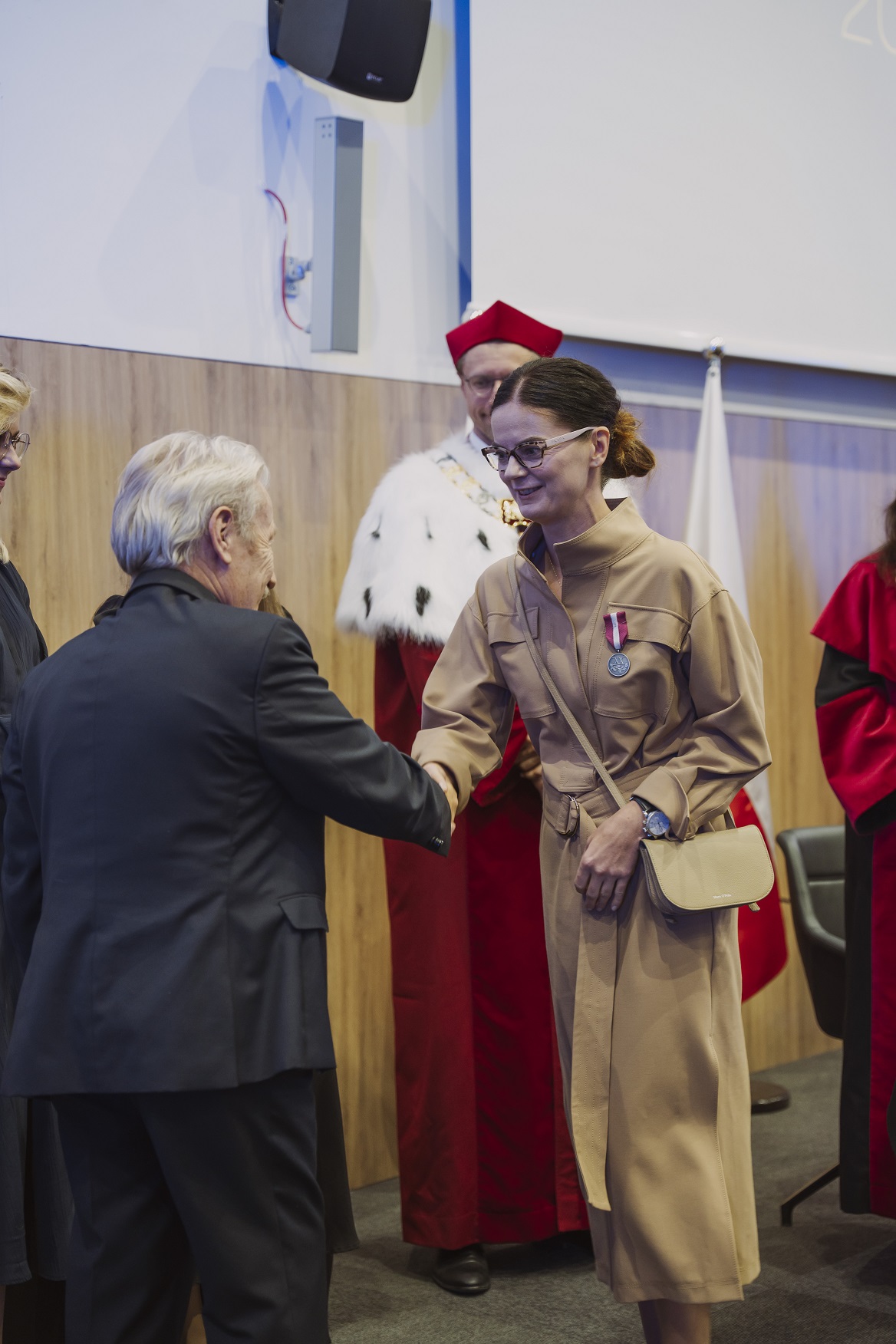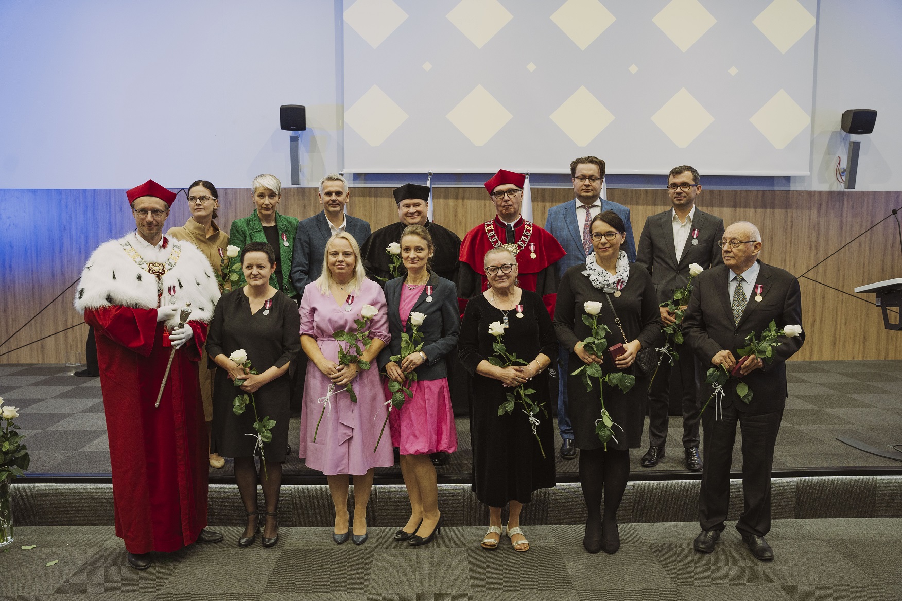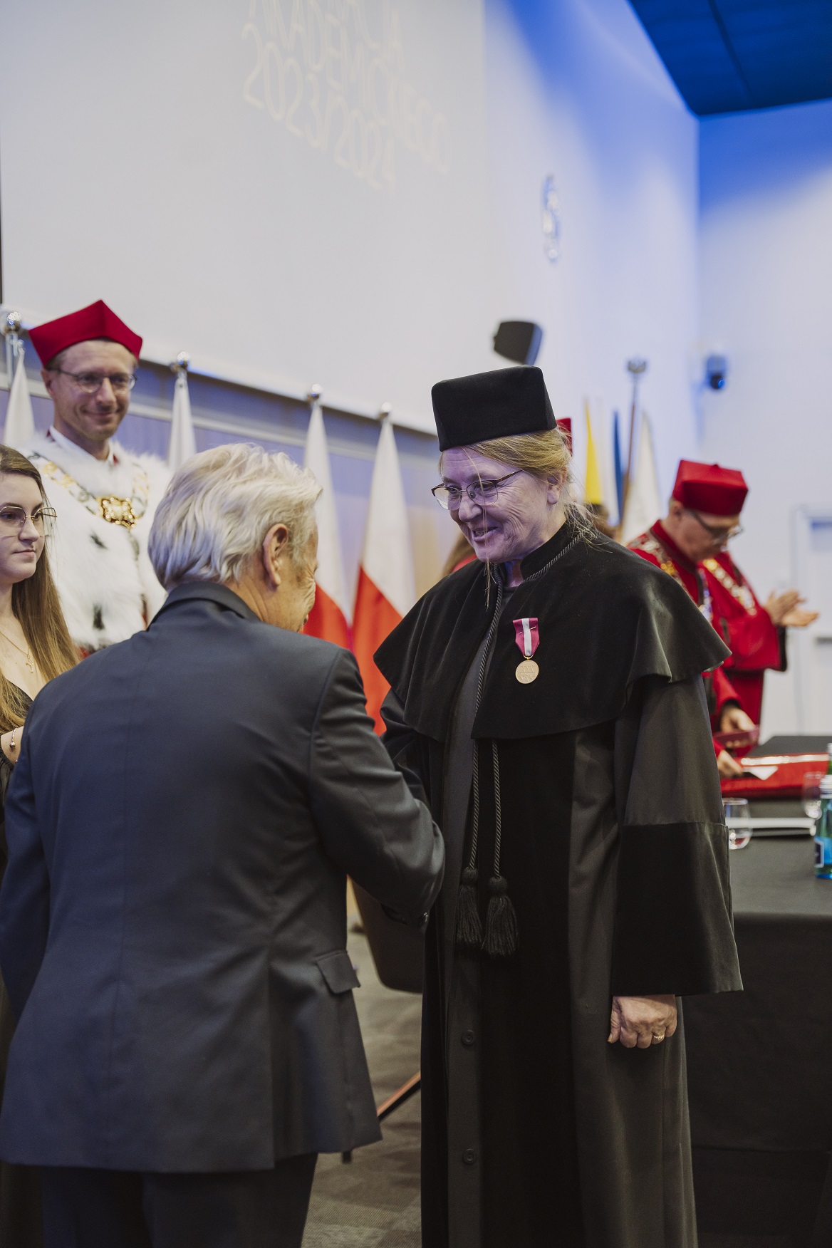 Podczas Inauguracji Roku Akademickiego 2023/2024 doceniono trud i wysiłek jaki pracownicy wkładają w codzienny rozwój nauki oraz budowanie tożsamości i rozwój naszej uczelni. Przez Prezydenta Rzeczypospolitej Polskiej, na wniosek Dyrektor Generalnej oraz Rektora, odznaczeni zostali: