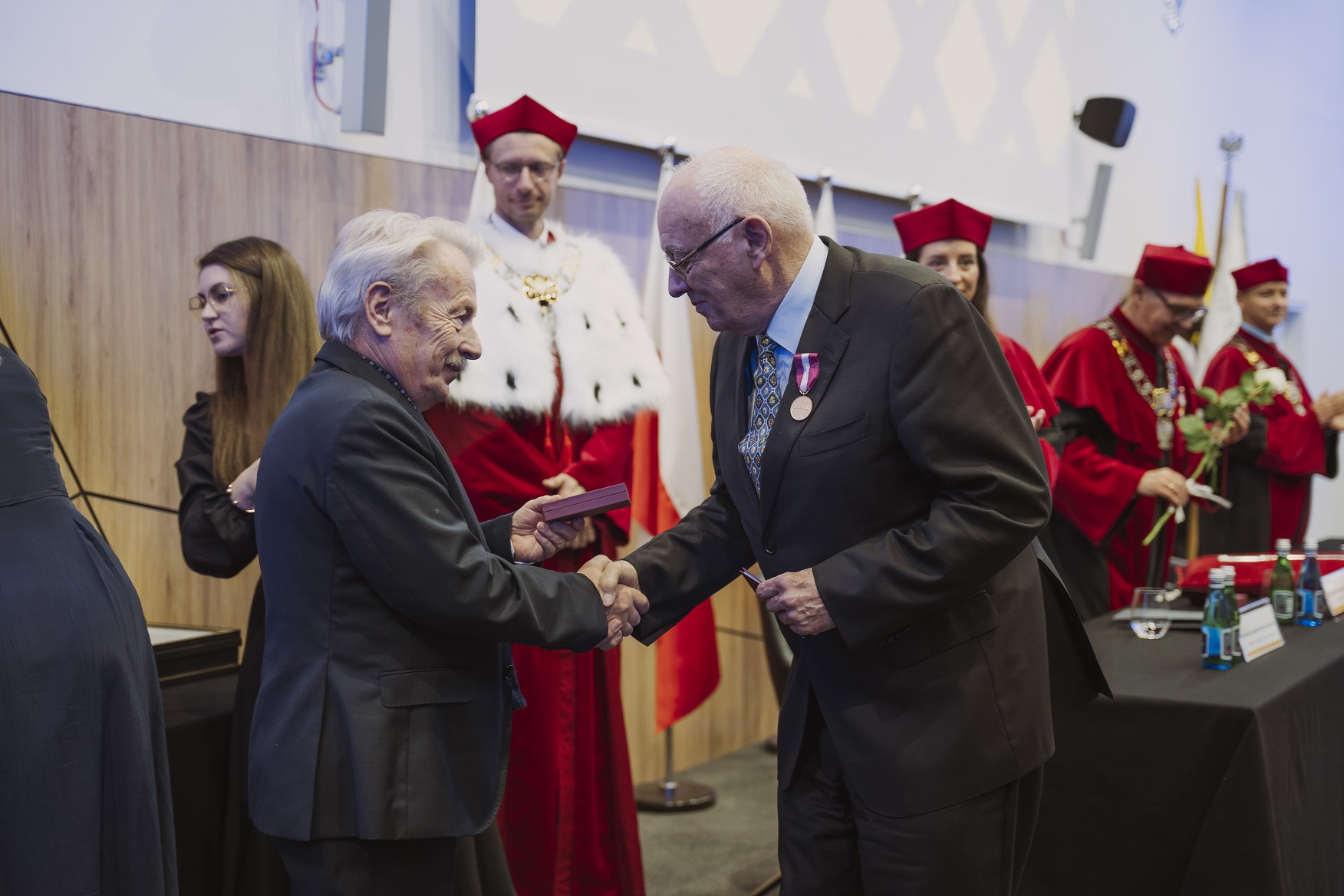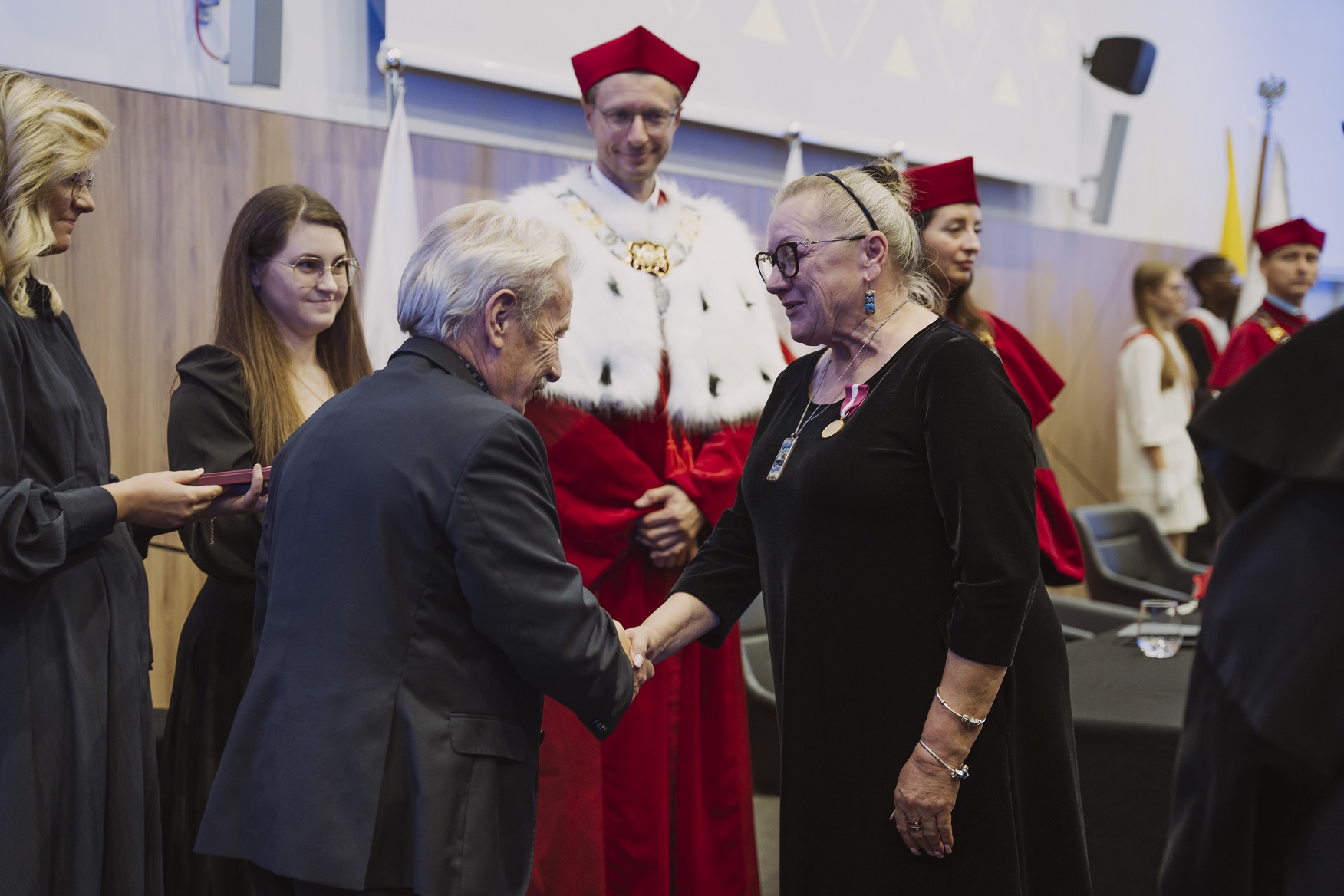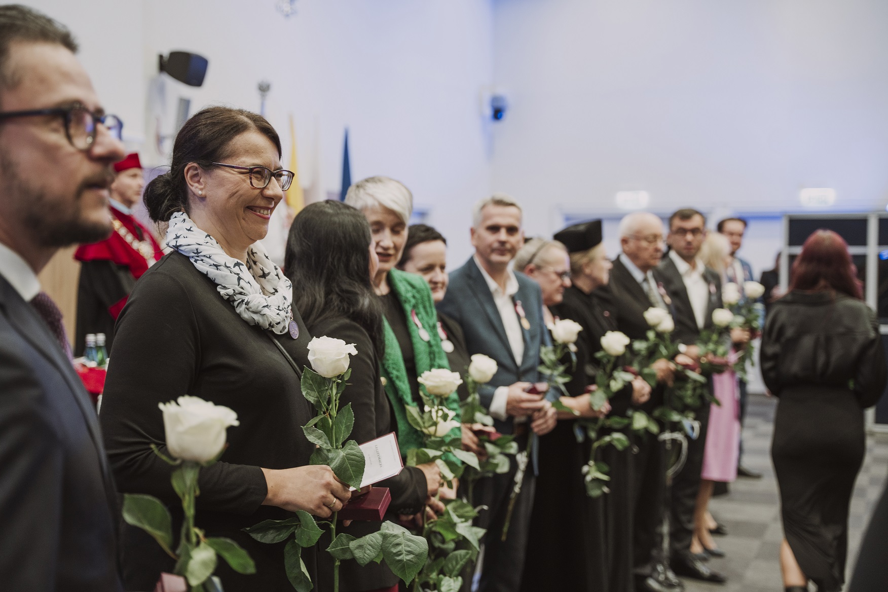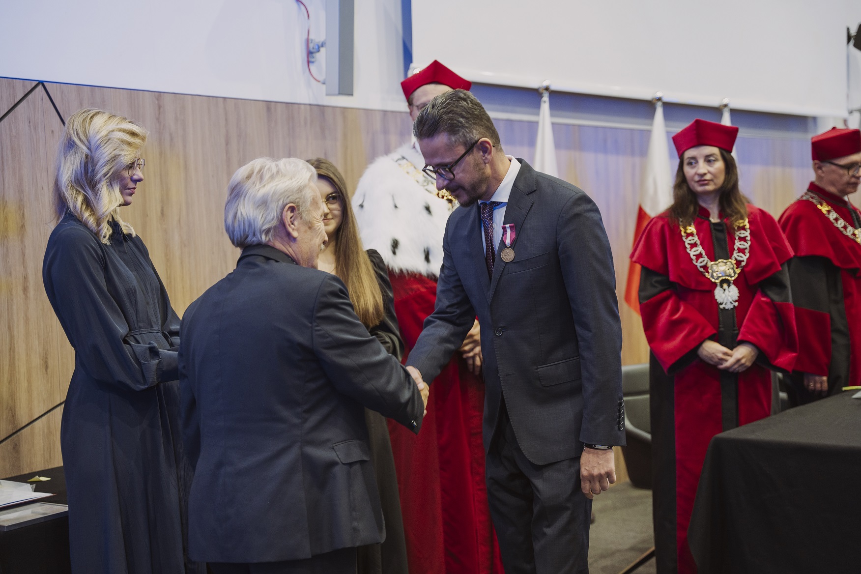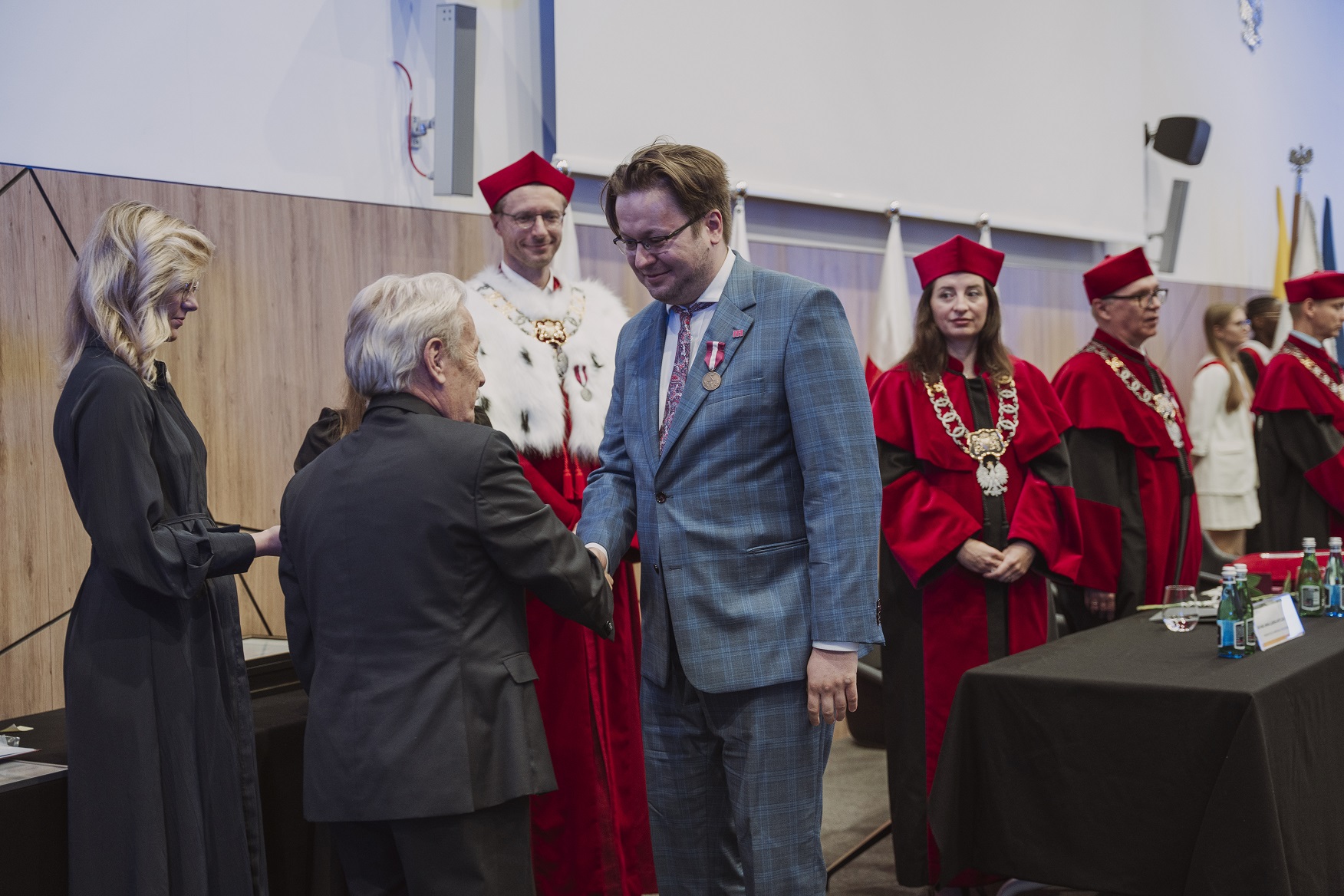Podczas Inauguracji Roku Akademickiego 2023/2024 doceniono trud i wysiłek jaki pracownicy wkładają w codzienny rozwój nauki oraz budowanie tożsamości i rozwój naszej uczelni. Przez Prezydenta Rzeczypospolitej Polskiej, na wniosek Dyrektor Generalnej oraz Rektora, odznaczeni zostali: