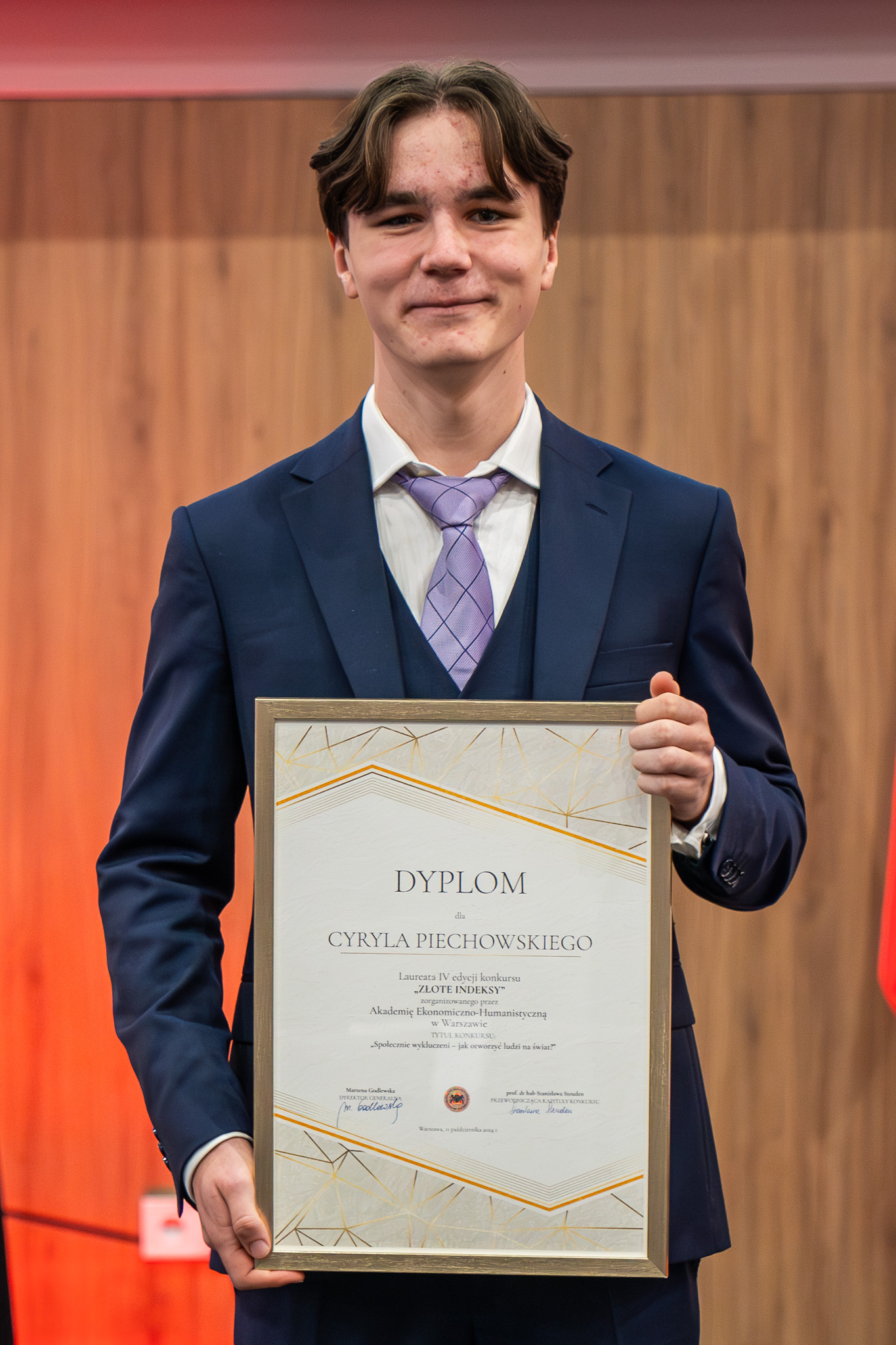 W tym roku obowiązkowym punktem programu było również wręczenie indeksu laureatowi konkursu o Złoty Indeks Akademii Ekonomiczno-Humanistycznej. To już czwarta edycja konkursu, który cieszy się niesłabnącym powodzeniem wśród maturzystów. Tegoroczna edycja odbyła się pod hasłem Społecznie wykluczeni – jak otworzyć ludzi na świat? Kapituła konkursu pod przewodnictwem prof. Stanisławy Steuden jednogłośnie wyłoniła zwycięzcę – Cyryla Piechowskiego, któremu nagrodę podczas uroczystości wręczyła Dyrektor Generalna Marzena Godlewska.