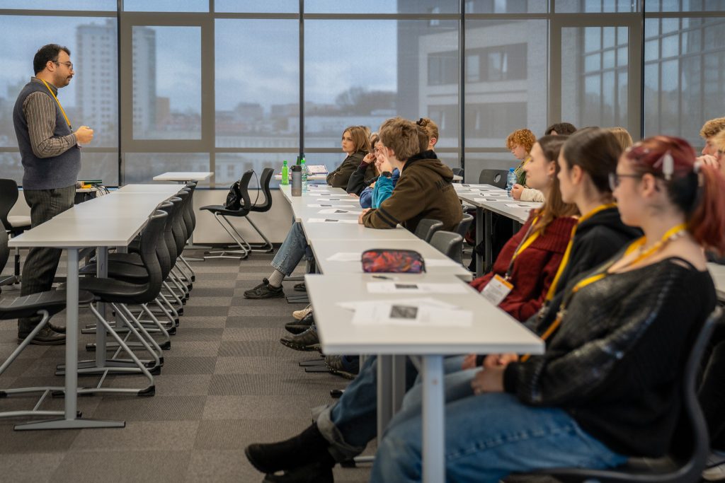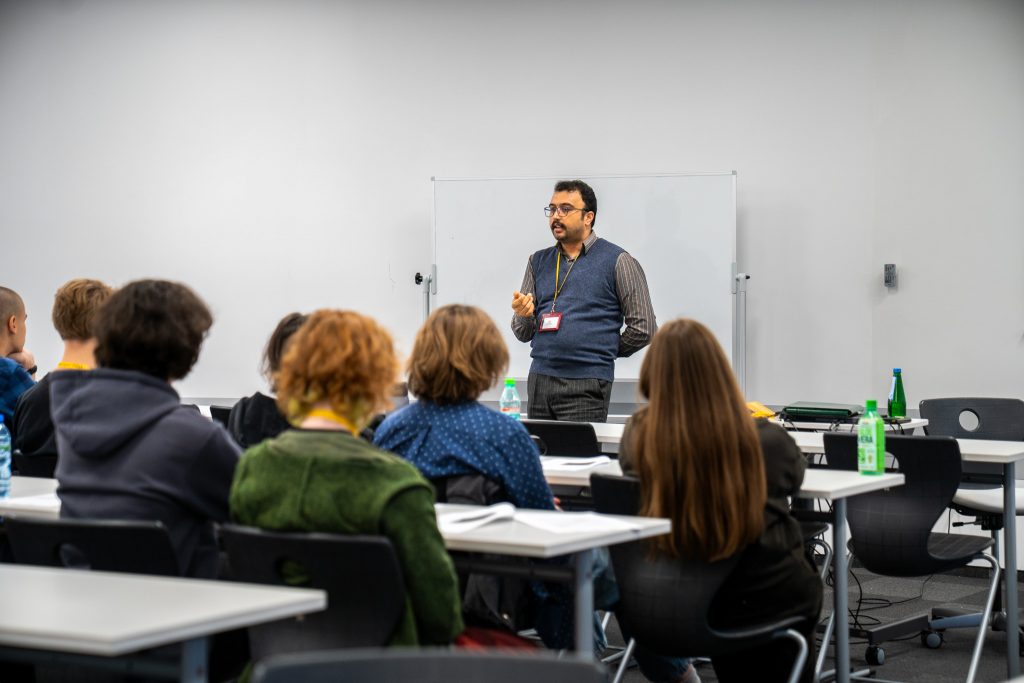 Po krótkiej przerwie odbyła się kolejna sesja zajęć, tym razem dedykowana wyłącznie uczniom liceum. Dr Ali Basarati poprowadził warsztaty poświęcone konwersacjom, czytaniu ze zrozumieniem i rozwijaniu krytycznego myślenia pod hasłem „The humanities and social sciences in the age of artificial intelligence”. Podczas zajęć uczniowie pracowali nad tekstami w języku angielskim, dyskutowali o roli nauk humanistycznych i społecznych we współczesnym świecie, a także zastanawiali się nad tym, jak sztuczna inteligencja wpływa na edukację, rynek pracy i codzienne życie. Prowadzący zachęcał do zadawania pytań, formułowania własnych opinii oraz argumentowania ich w języku angielskim, dzięki czemu młodzież mogła połączyć rozwój kompetencji językowych z refleksją nad aktualnymi globalnymi trendami.