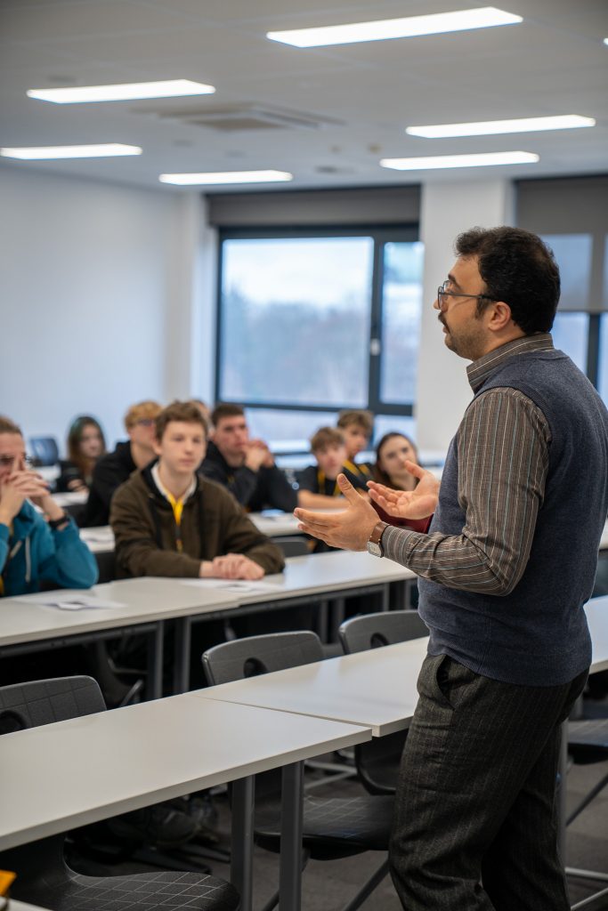 Uczniowie mogli przekonać się, jak wygląda praca na zajęciach, w jaki sposób wykładowcy prowadzą ćwiczenia i dyskusje oraz na ile wymagające jest środowisko akademickie, gdy całość odbywa się w języku angielskim. Była to jednocześnie okazja, by sprawdzić swoje umiejętności językowe i zobaczyć, jak istotna jest swoboda komunikacji w międzynarodowym otoczeniu.