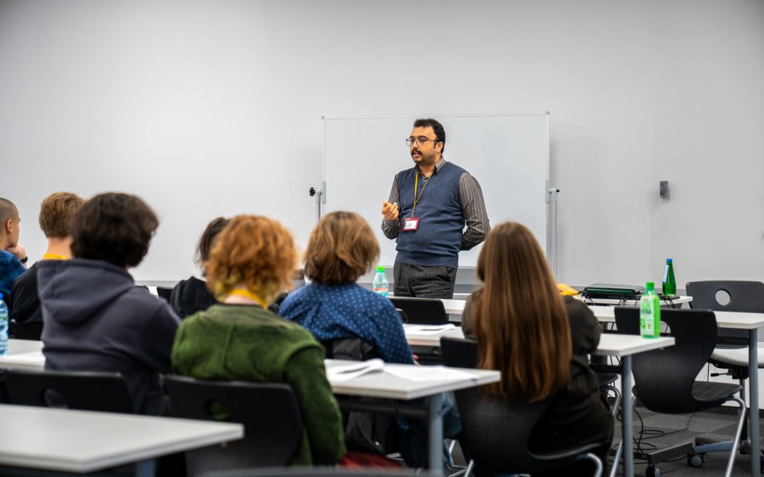 Po krótkiej przerwie odbyła się kolejna sesja zajęć, tym razem dedykowana wyłącznie uczniom liceum. Dr Ali Basarati poprowadził warsztaty poświęcone konwersacjom, czytaniu ze zrozumieniem i rozwijaniu krytycznego myślenia pod hasłem „The humanities and social sciences in the age of artificial intelligence”. Podczas zajęć uczniowie pracowali nad tekstami w języku angielskim, dyskutowali o roli nauk humanistycznych i społecznych we współczesnym świecie, a także zastanawiali się nad tym, jak sztuczna inteligencja wpływa na edukację, rynek pracy i codzienne życie. Prowadzący zachęcał do zadawania pytań, formułowania własnych opinii oraz argumentowania ich w języku angielskim, dzięki czemu młodzież mogła połączyć rozwój kompetencji językowych z refleksją nad aktualnymi globalnymi trendami.