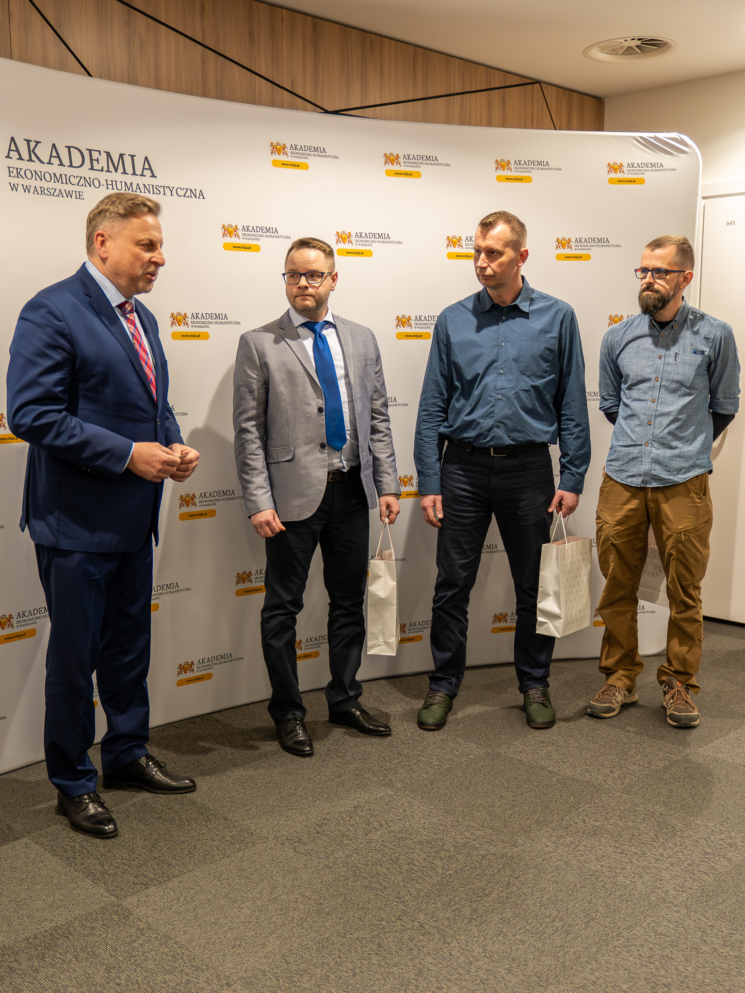 Gratulacje studentom złożył dr Tomasz Kownacki, Prorektor ds. Rozwoju AEH, który podkreślił wagę zaangażowania społecznego i praktycznego wymiaru edukacji. Podziękował również partnerom konkursu za aktywne wsparcie i gotowość do współpracy ze środowiskiem akademickim.