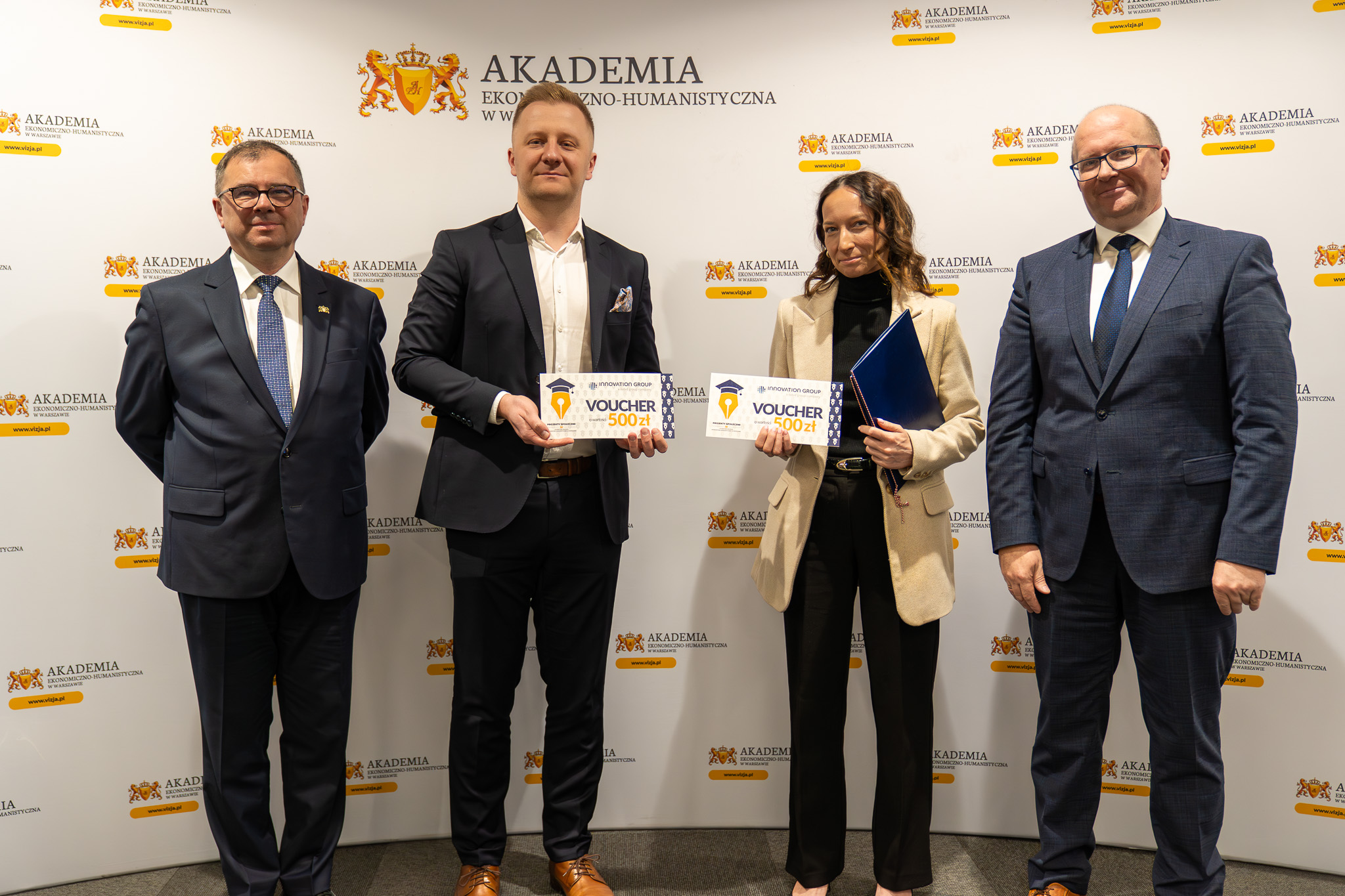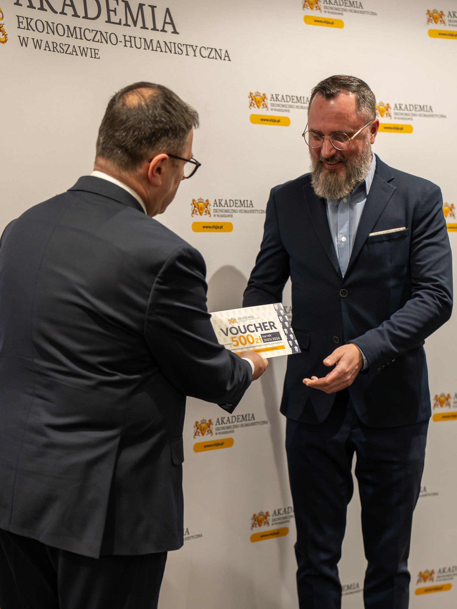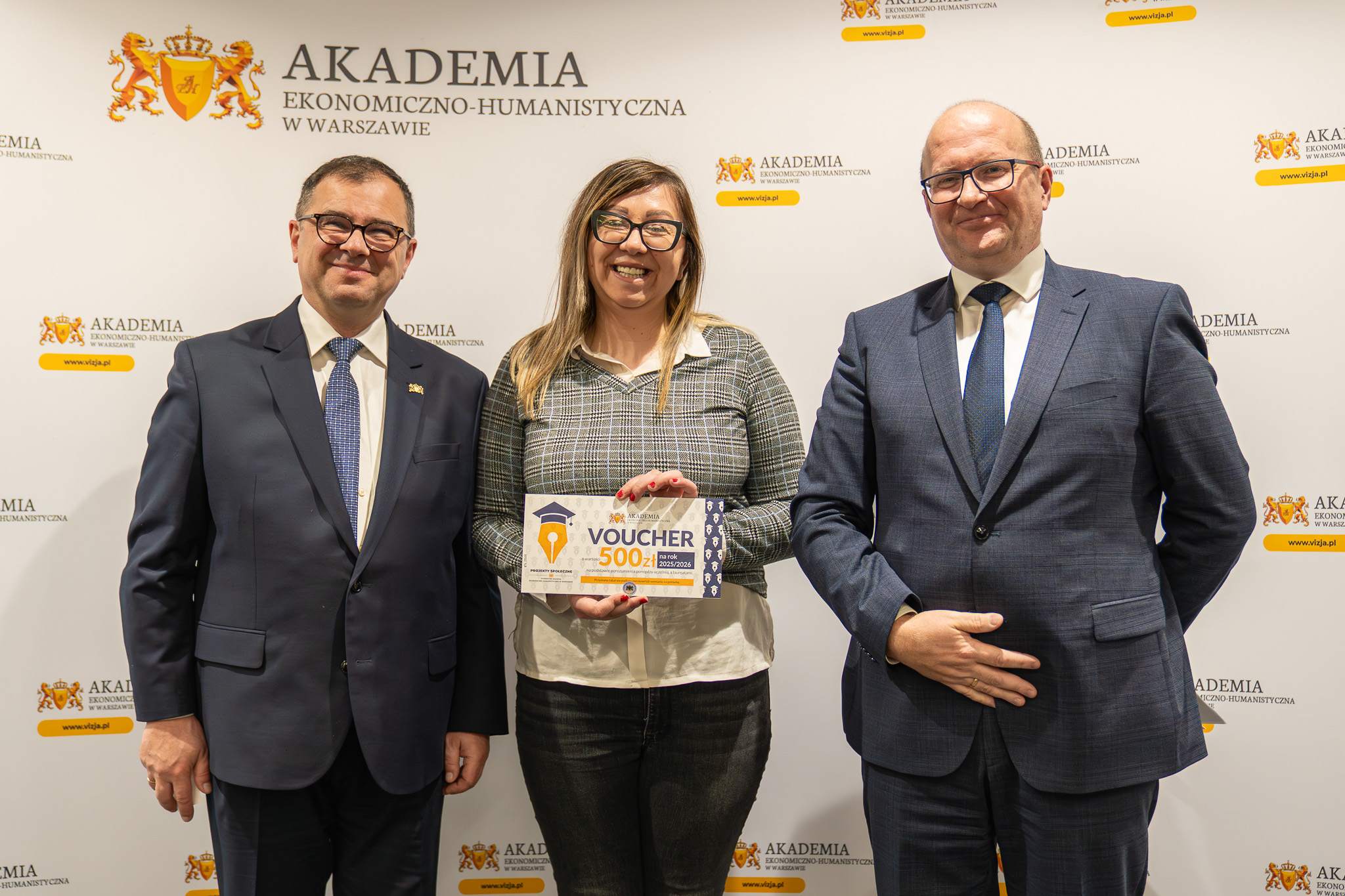 Akademia Ekonomiczno-Humanistyczna w Warszawie przyznała również vouchery edukacyjne o wartości 500 zł, które mogą zostać przeznaczone na dalszą naukę w ramach oferty studiów uczelni.