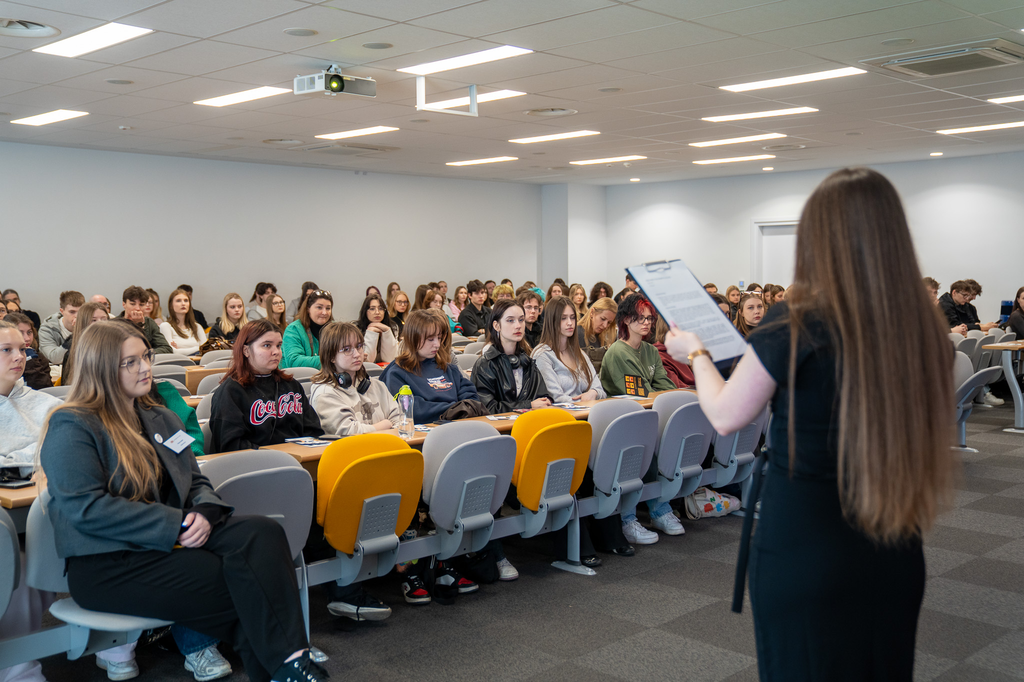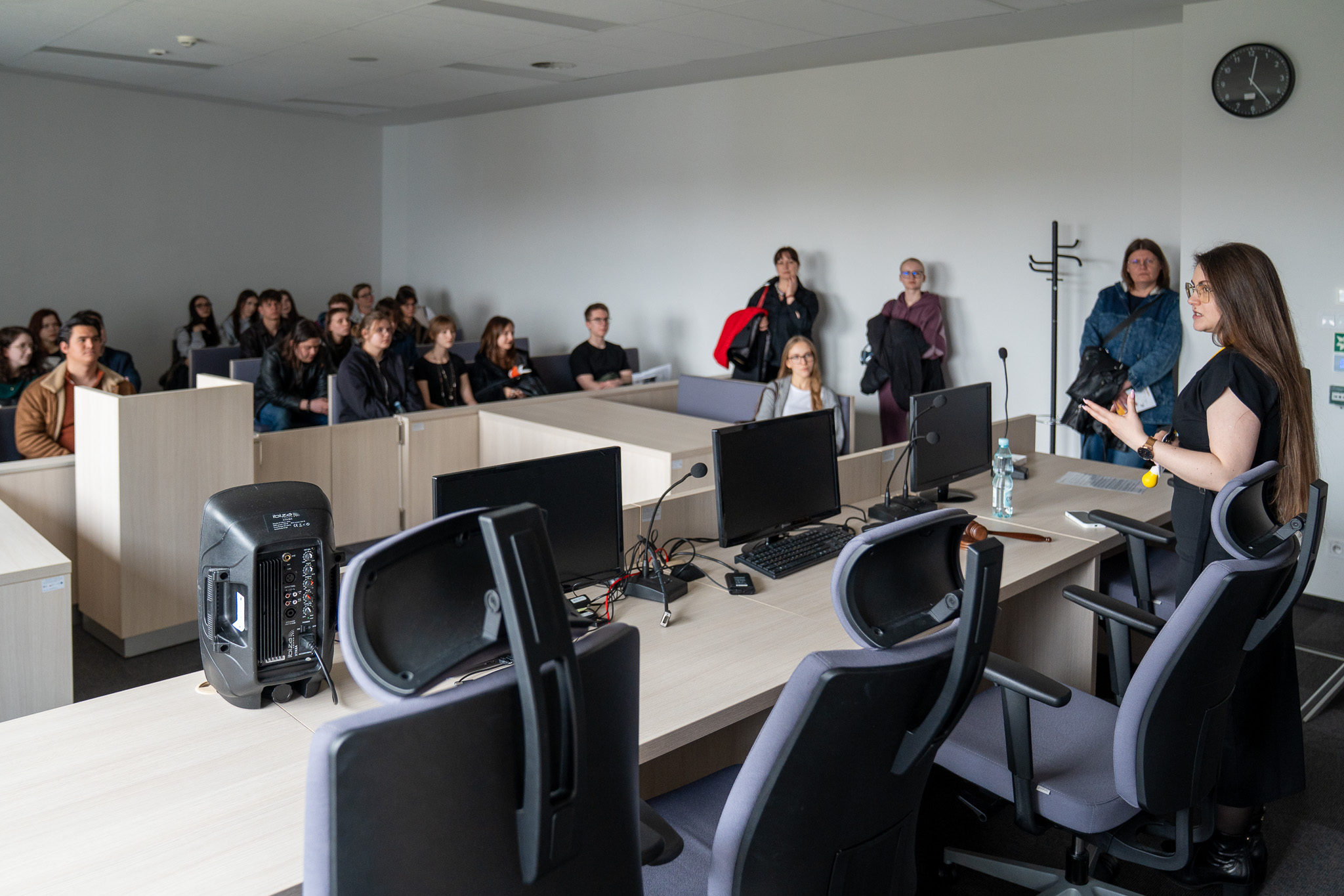 Program spotkania obejmował aktywności realizowane od godziny 10:00 do 14:30. Po części informacyjnej uczestnicy brali udział w formule targowej oraz odwiedzali „Sale zmysłów” zorganizowaną przez Biuro do spraw Osób z Niepełnosprawnościami. O godzinie 12:00 odbyła się prelekcja połączona z warsztatem „Overcoming English-Speaking Anxiety”, którą poprowadził dr hab. Luis Javier Pentón Herrera. Utworzyliśmy również strefę targową, gdzie w godzinach 11:00 – 14:00 wszyscy uczestnicy mogli spotkać się i porozmawiać z opiekunami kierunków. Spotkanie zakończyło się zwiedzaniem kampusu, podczas którego przyszli studenci mogli obejrzeć najważniejsze miejsca uczelni oraz zobaczyć sale tematyczne m.in. salę symulacji rozpraw sądowych czy symulacji giełdowych.