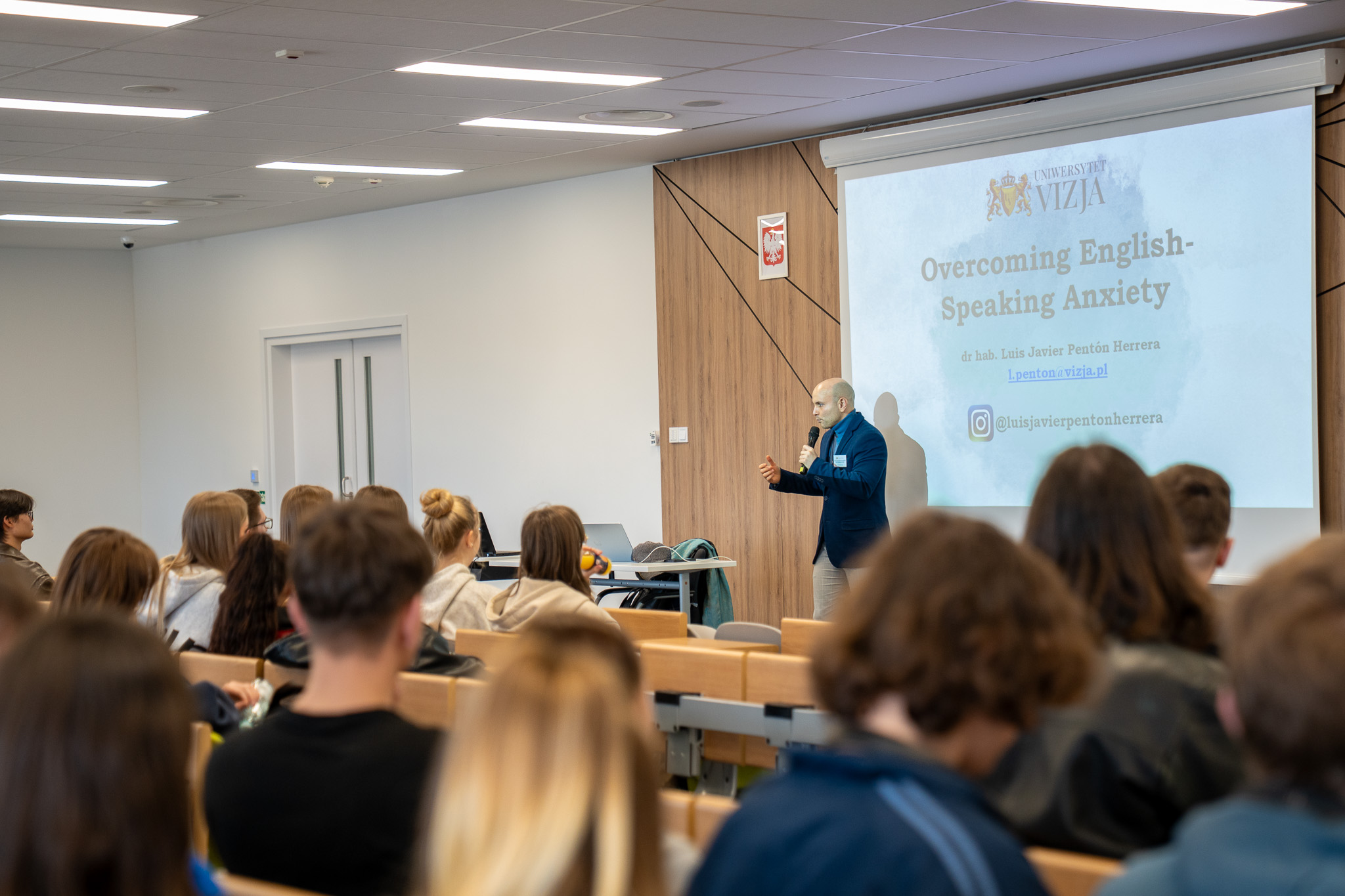 Część merytoryczną uzupełnił dr hab. Luis Javier Pentón Herrera prof. Uniwersytetu VIZJA, który przeprowadził prelekcję z elementami warsztatu pod tytułem „Overcoming English-Speaking Anxiety”. Uczestnicy zajęć poznali techniki radzenia sobie ze stresem podczas komunikacji w języku obcym. Warsztaty odbywały się w godzinach 12:00–13:00 i były dostępne dla wszystkich osób zarejestrowanych na wydarzenie.