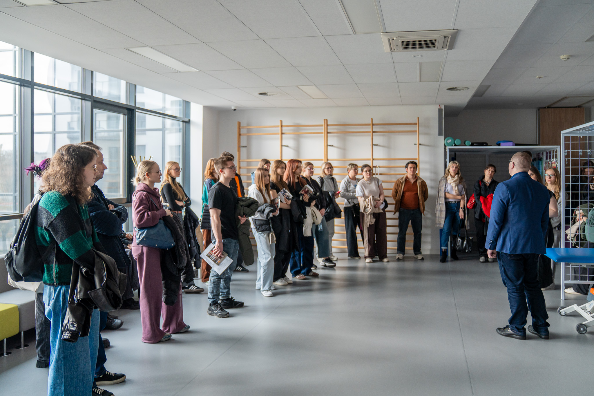 Ostatnim punktem programu było oprowadzanie po infrastrukturze uczelni, które rozpoczęło się o godzinie 13:30. Uczestnicy zobaczyli sale wykładowe, pracownie specjalistyczne oraz strefy wspólne kampusu przy ul. Okopowej 59. Pracownicy uniwersytetu opisywali przeznaczenie poszczególnych przestrzeni i ich wyposażenie techniczne. Podczas spaceru kandydaci uzyskali informacje o zapleczu dydaktycznym dostępnym dla studentów wszystkich kierunków.