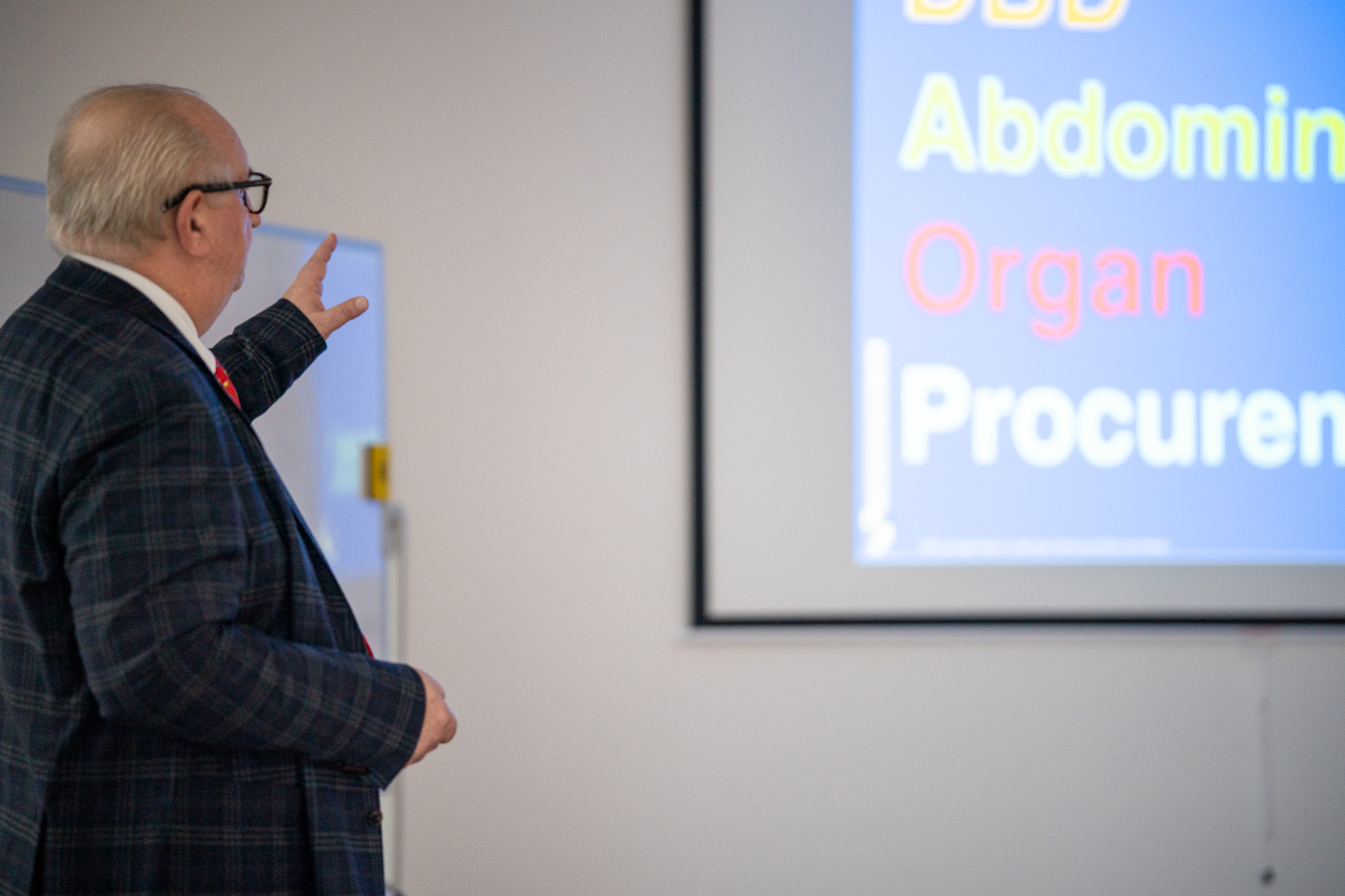 Podczas wykładu zatytułowanego Narządy jamy brzusznej – od pobrania do przeszczepienia Profesor omówił m.in. kolejne etapy procesu transplantacji narządów, specyfikę przeszczepiania poszczególnych organów, a także techniki chirurgiczne – w tym autorskie rozwiązania na tym polu. Słuchacze poznali też kluczowe aspekty prawne związane z międzynarodowymi procedurami i programami transplantacyjnymi.